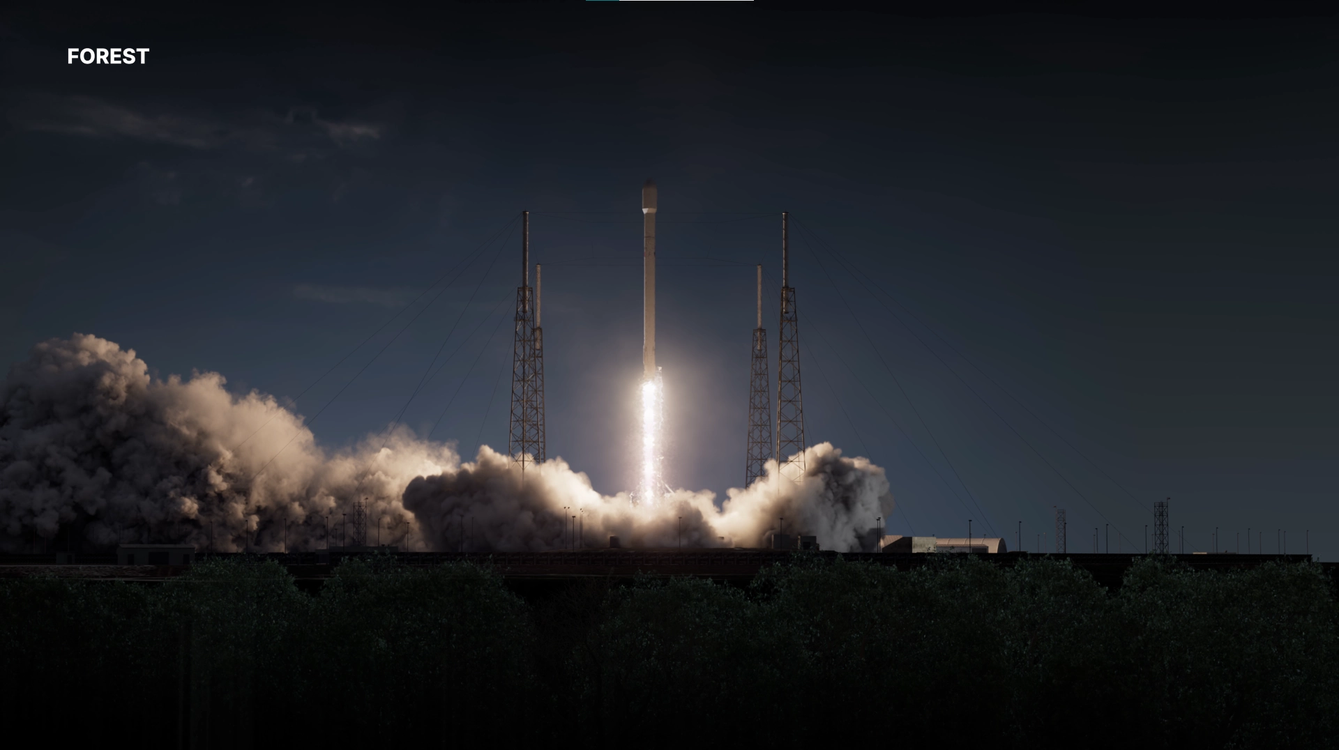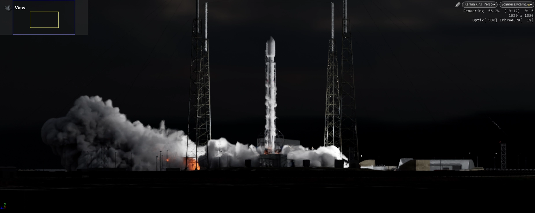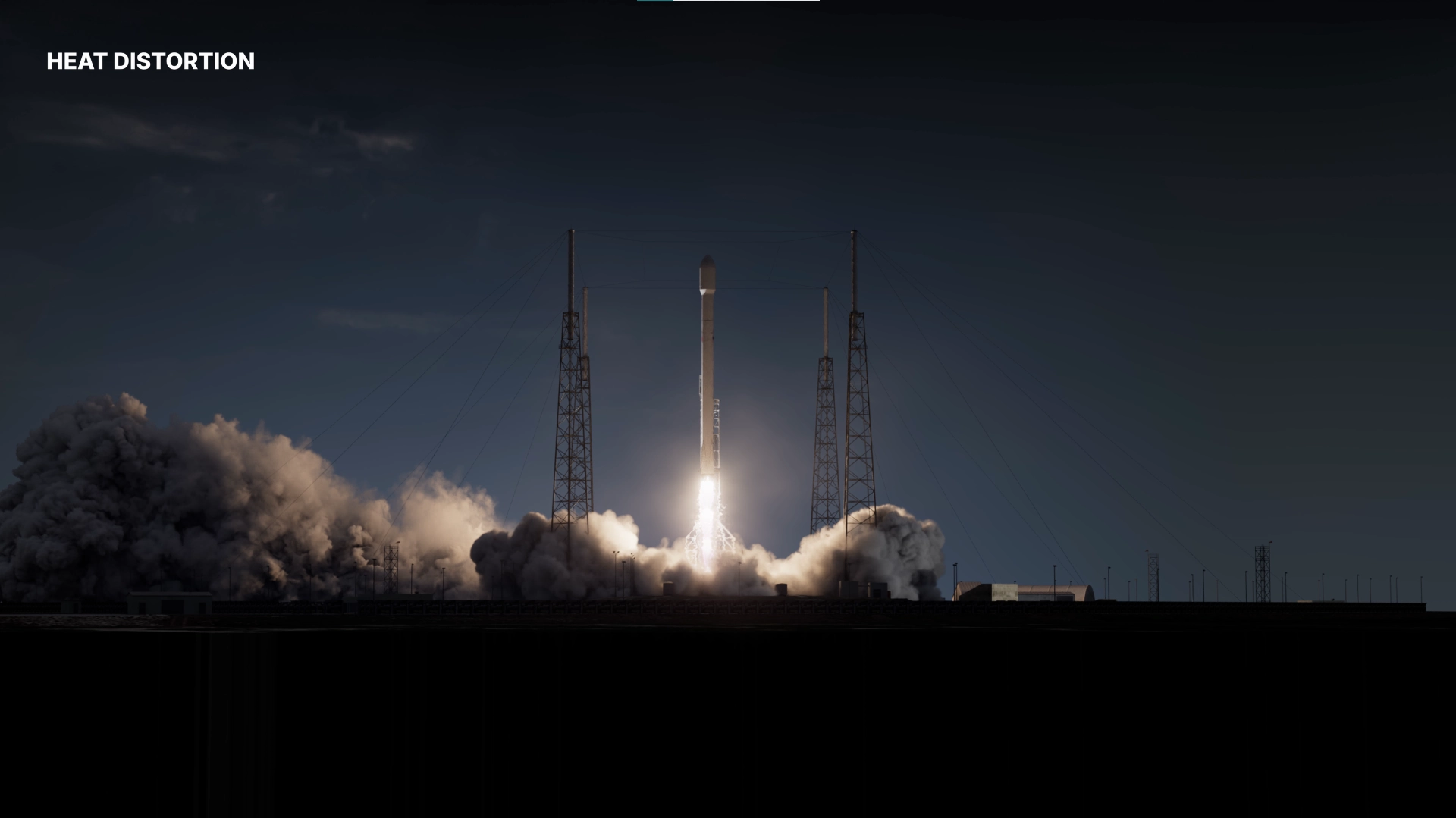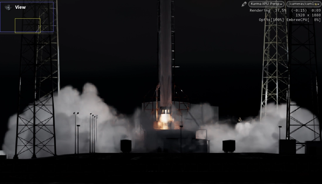 Thruster Core was built as a custom particle system, shaped and directed to maintain high-energy structure during lift-off. Rocket Exhaust Smoke and Fire were simulated using Pyro. Breaking Ice around the launch structure was simulated using RBD. Smoke from Ice Fractures was simulated with Pyro to add atmospheric interaction. Foreground Trees were simulated using Vellum to react to wind.