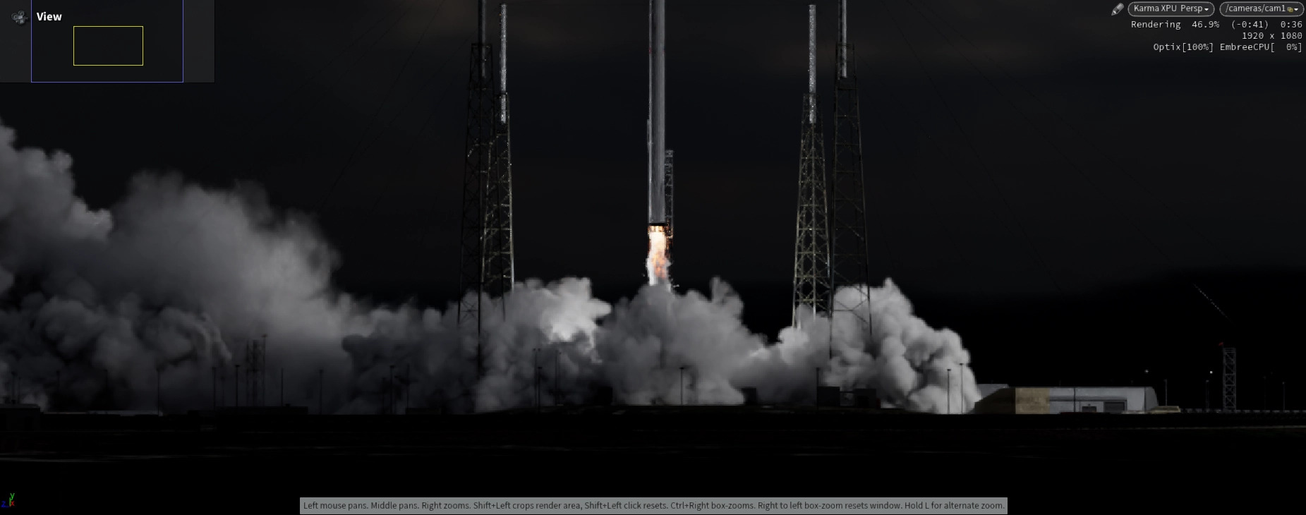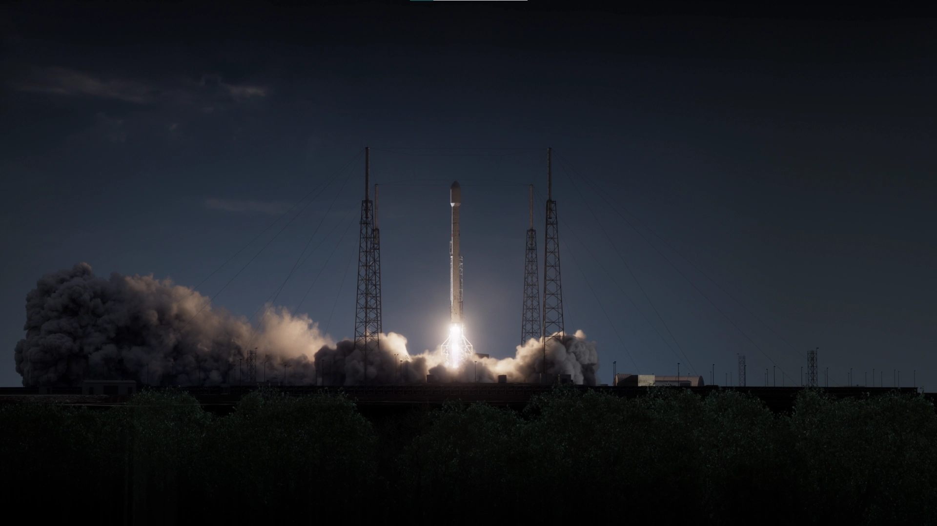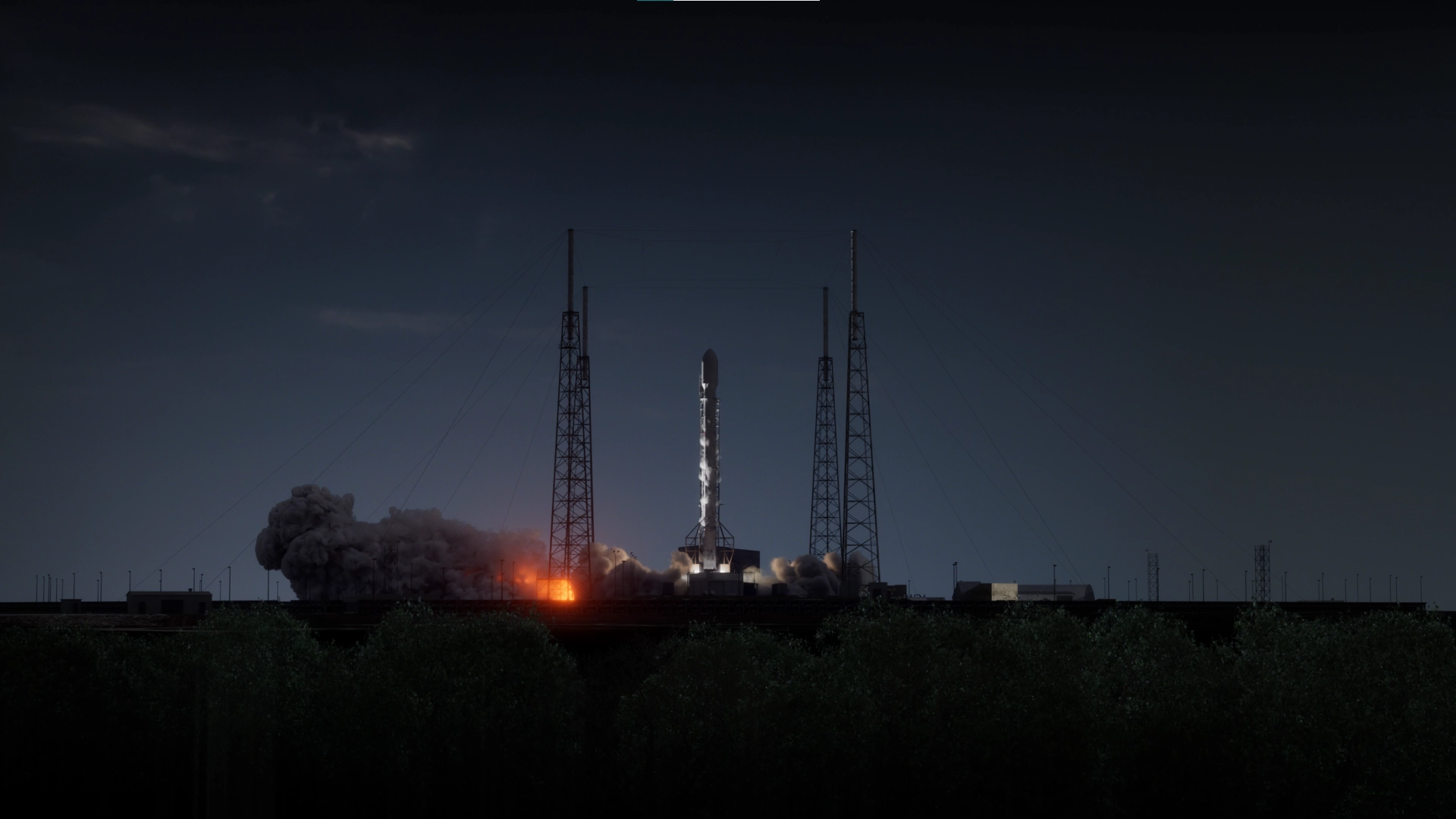 Thruster Core was built as a custom particle system, shaped and directed to maintain high-energy structure during lift-off. Rocket Exhaust Smoke and Fire were simulated using Pyro. Breaking Ice around the launch structure was simulated using RBD. Smoke from Ice Fractures was simulated with Pyro to add atmospheric interaction. Foreground Trees were simulated using Vellum to react to wind.