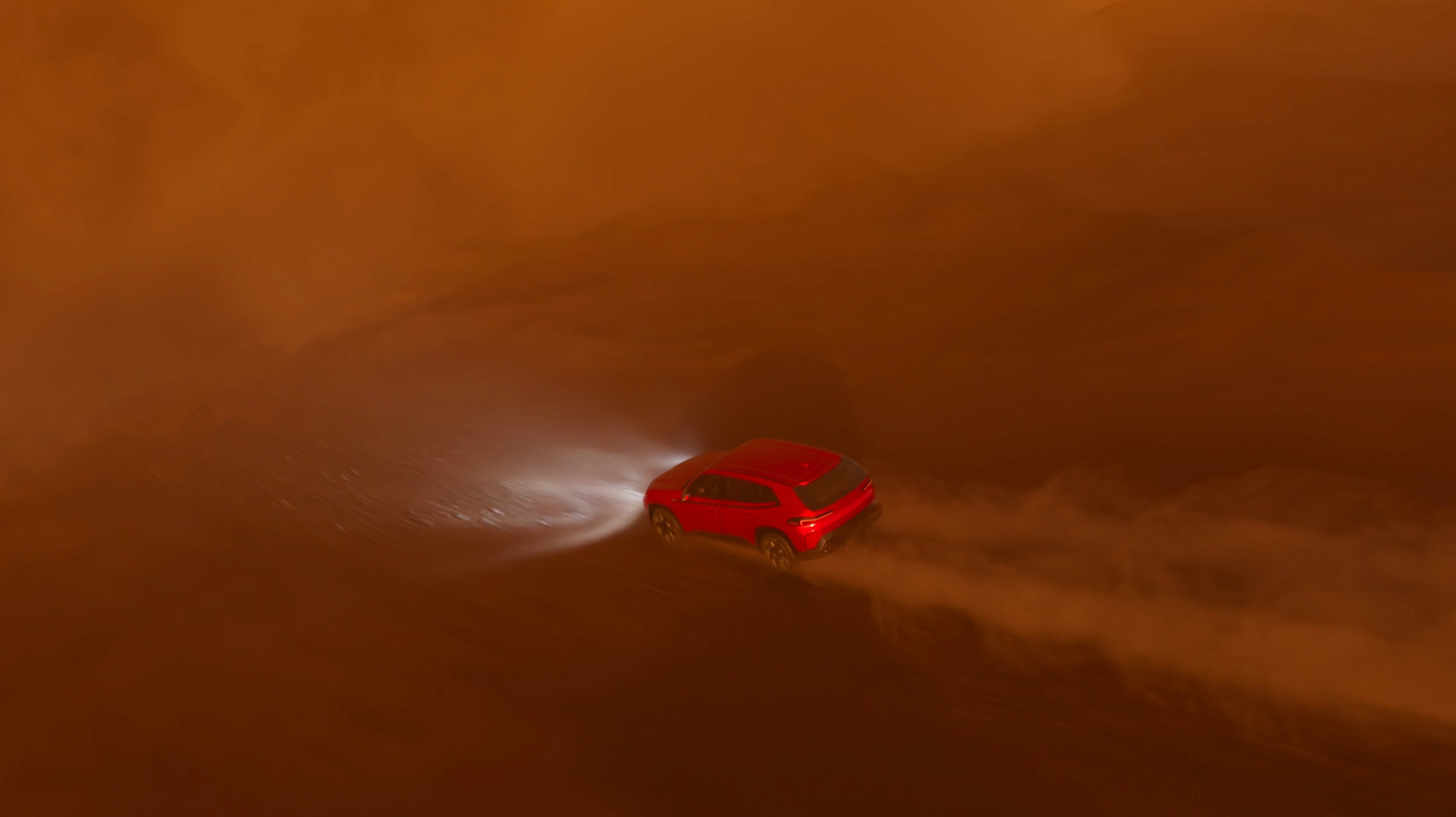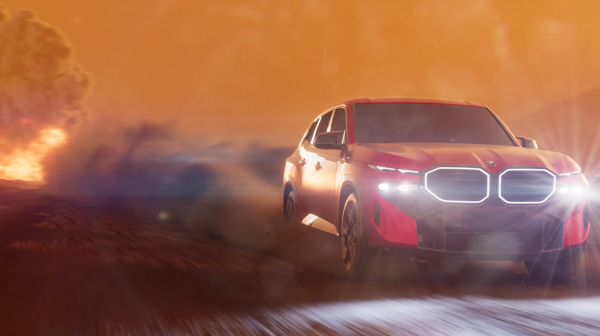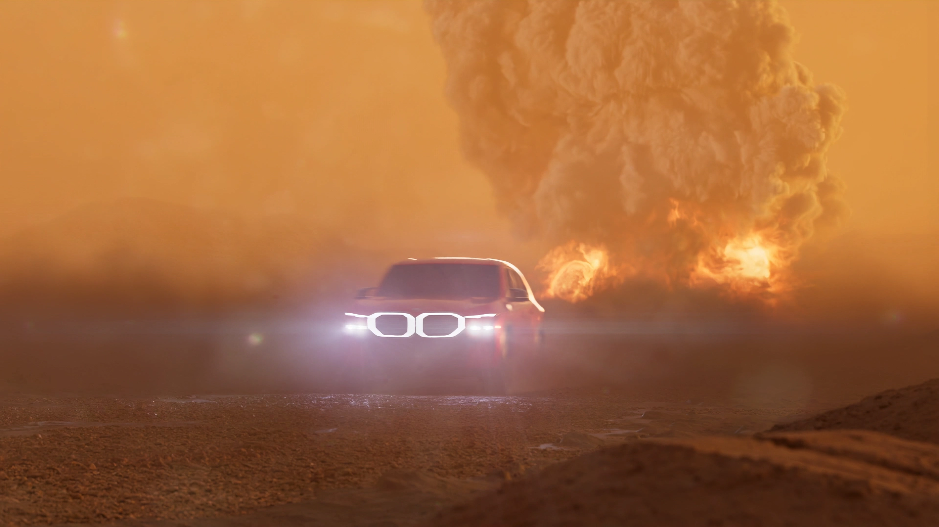 We focused on combining stability with intensity. The camera remains mostly steady and centered on the XM. This contrast between calm movement and environmental turbulence defines the tone of the commercial. Every element in the scene, including explosions, wind, lightning, and debris test the XM’s resilience. The goal was to portray the brand as confident and bold while the environment reacts turbulently.