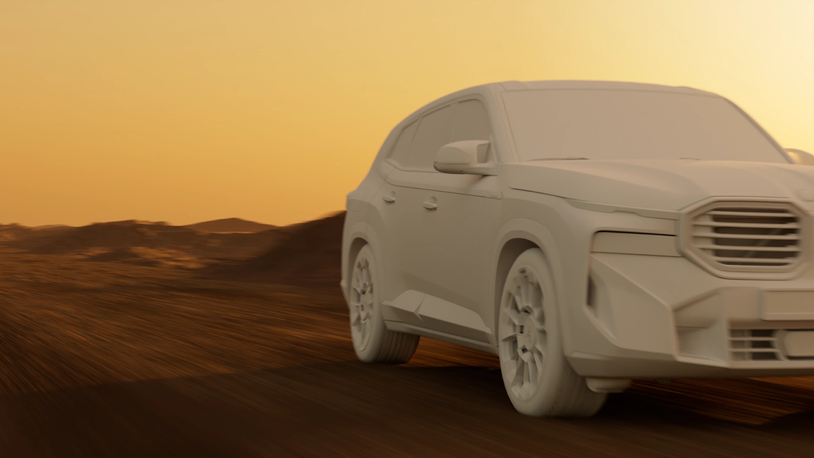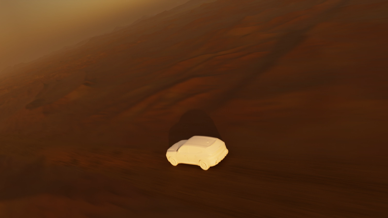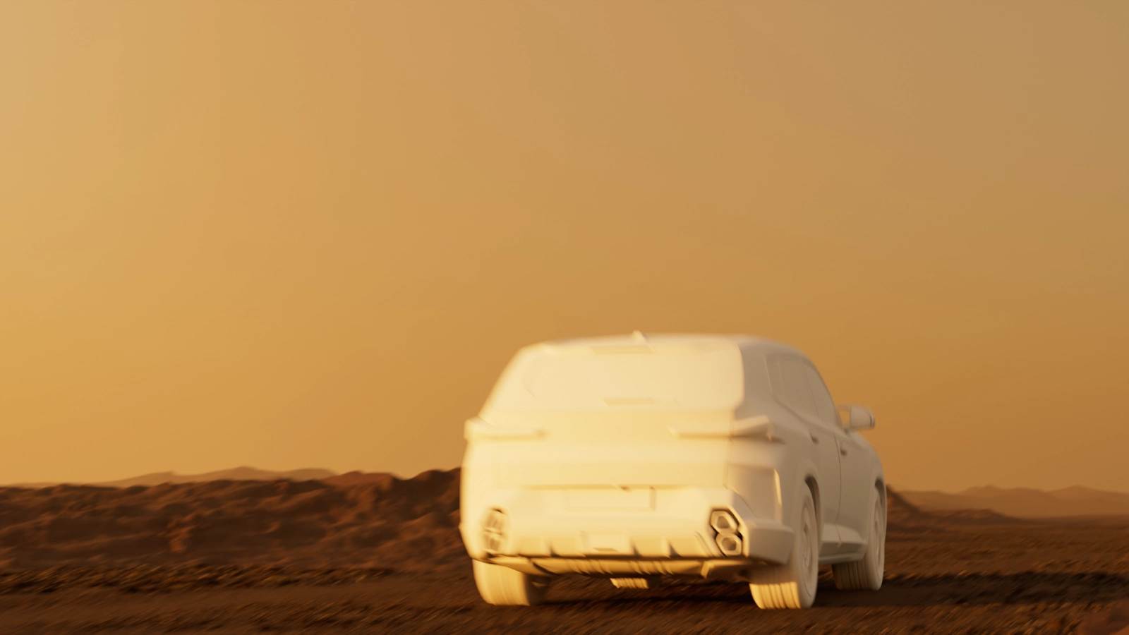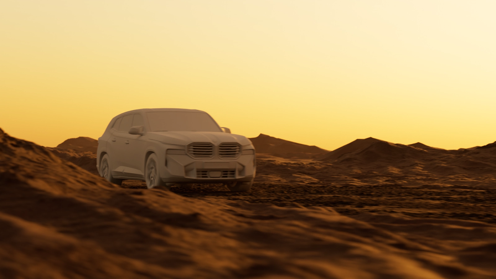 After the base animation and shading setup were complete, the project moved into Houdini for simulation and lighting. The workflow was built around USD which made it possible to move the scene between Blender’s Cycles, Solaris, and Karma XPU without losing structure. Matching the look across different tools was a key part of the process, especially when balancing desert lighting and the reflective red and black surfaces of the XM.